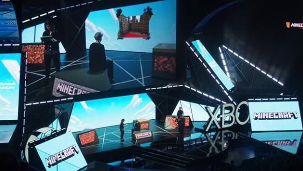 微軟花了25億美元收購Minecraft開發商Mojang,第一款麵向Hololens的Minecraft遊戲可以讓你在實體桌麵上投放圖像,操作很簡單,你隻需要說一句“給我創造一個世界”就行了。隨(suí)後你就可以用手來操作項目和(hé)角色。當你完成這一切時,其它人可(kě)以同時利(lì)用微(wēi)軟Surface平板沉浸在Minecraft世界中(zhōng)。