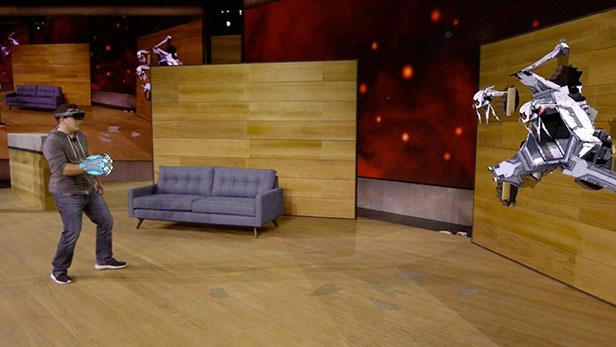 如(rú)果用HoloLens玩遊戲效(xiào)果如何(hé)?微軟正在開發,在2015年的E3發布會上,微軟演示了所謂的混合現實遊戲(xì)。